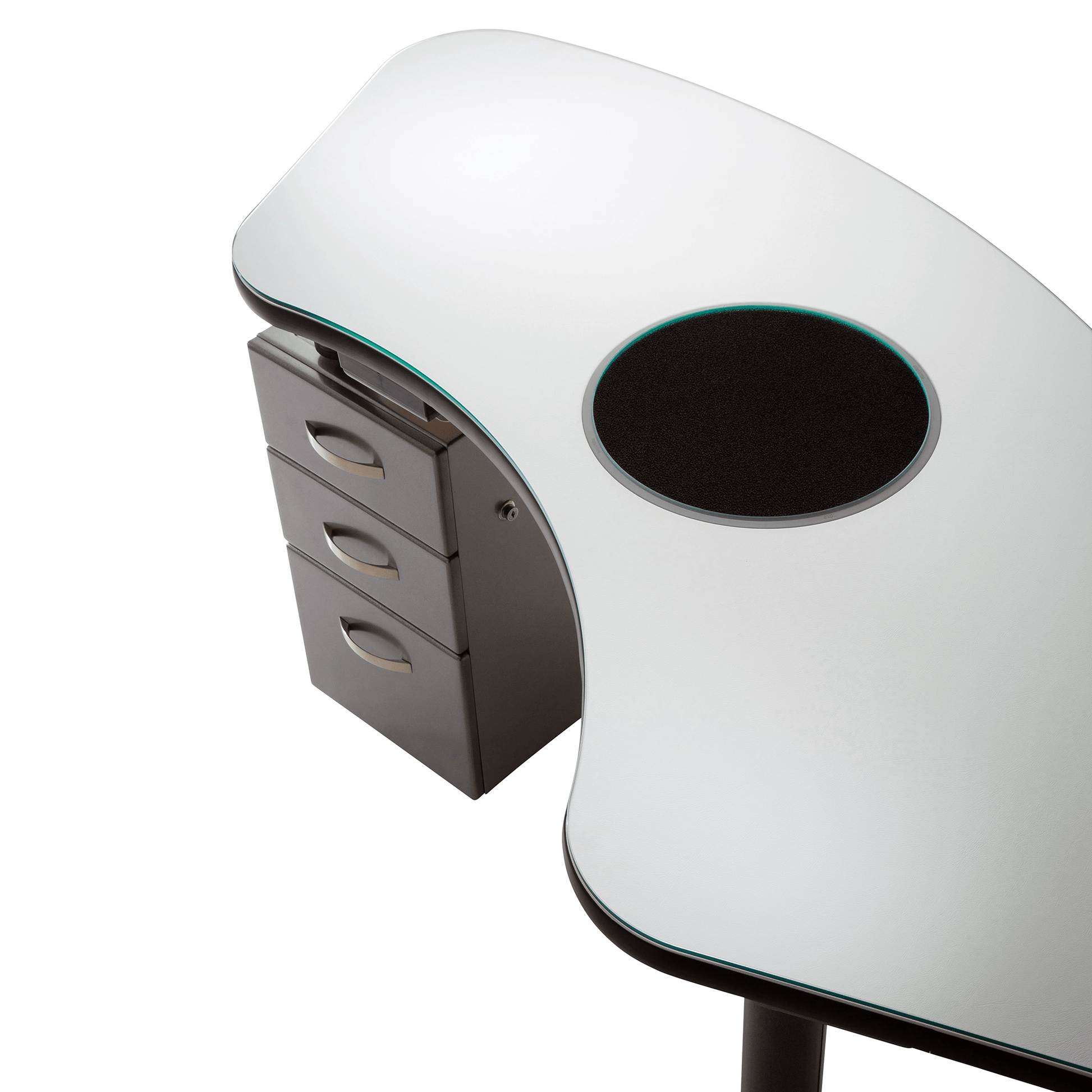 | Replacement glass worktop for your emendee Workstation in Boomerang size. |